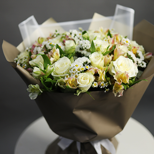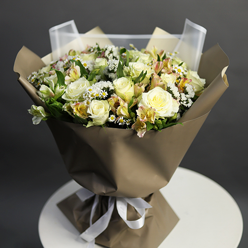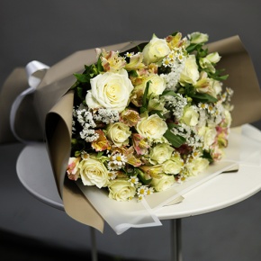 Букет "Воскресенье" из роз, альстромерий и ромашек