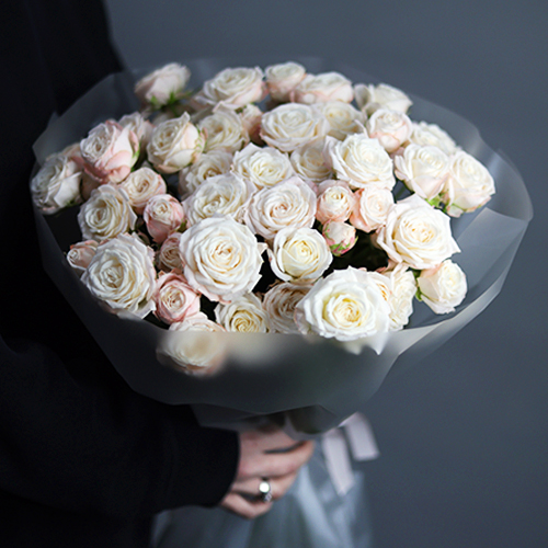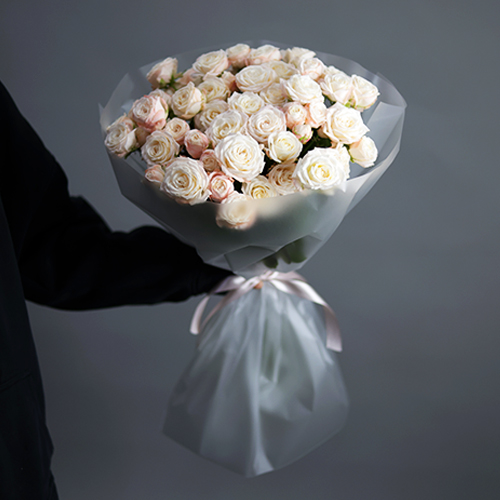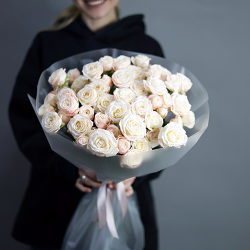 Нежный букет из кремовых 15 кустовых роз Бомбастик (50 см)